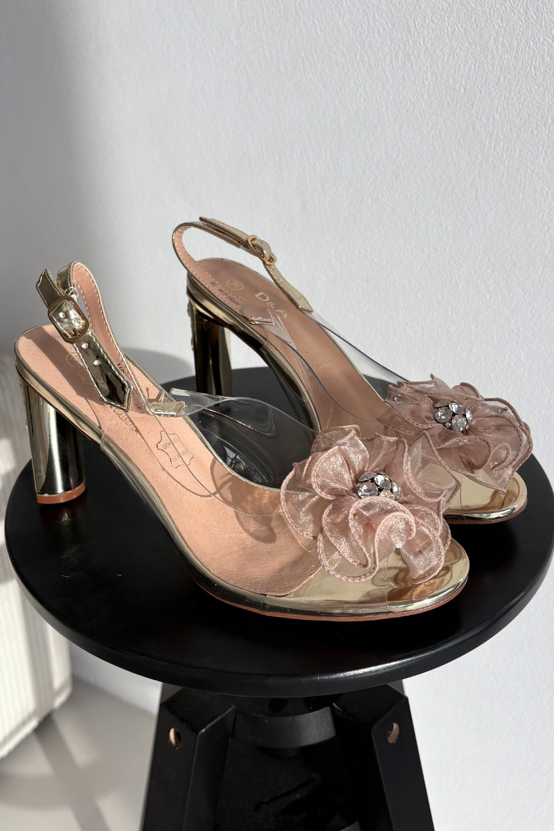 Sandali con tacco e decorazioni D&A MR52-236, color oro