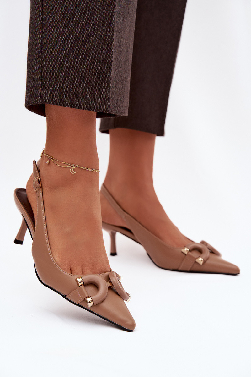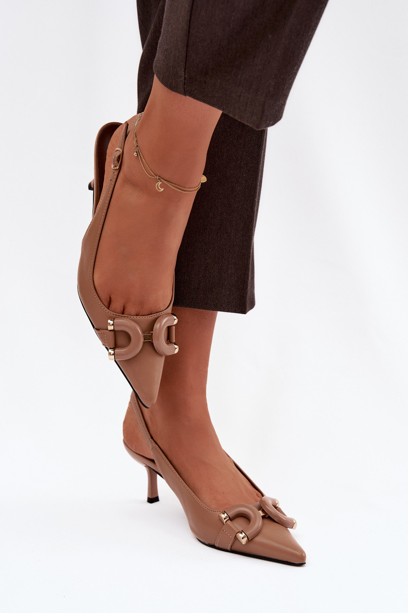 Sandali da donna con tacco sottile e dettagli eleganti, color marrone Brienne
