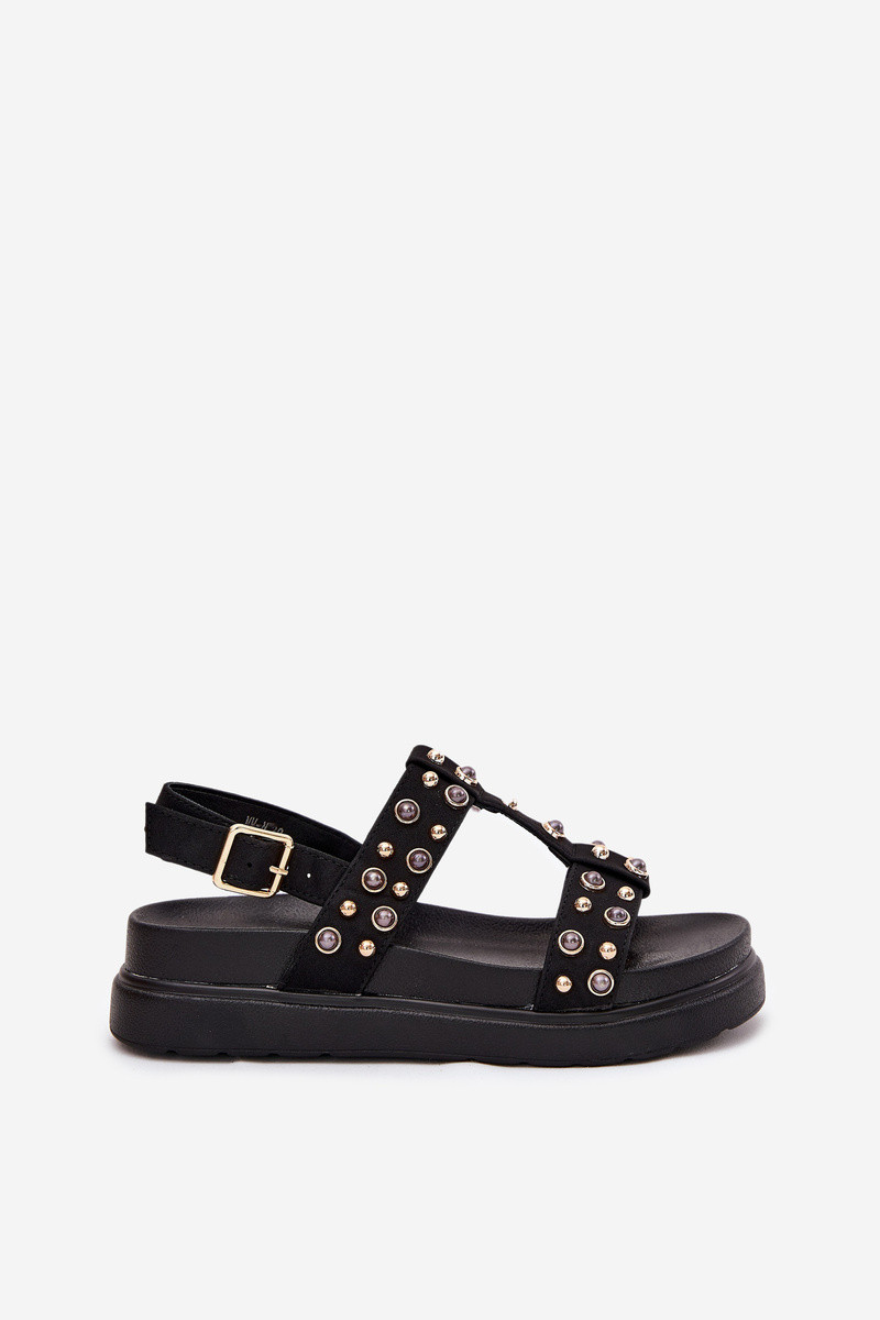 Sandali decorati da donna con piattaforma neri Tai turillisa