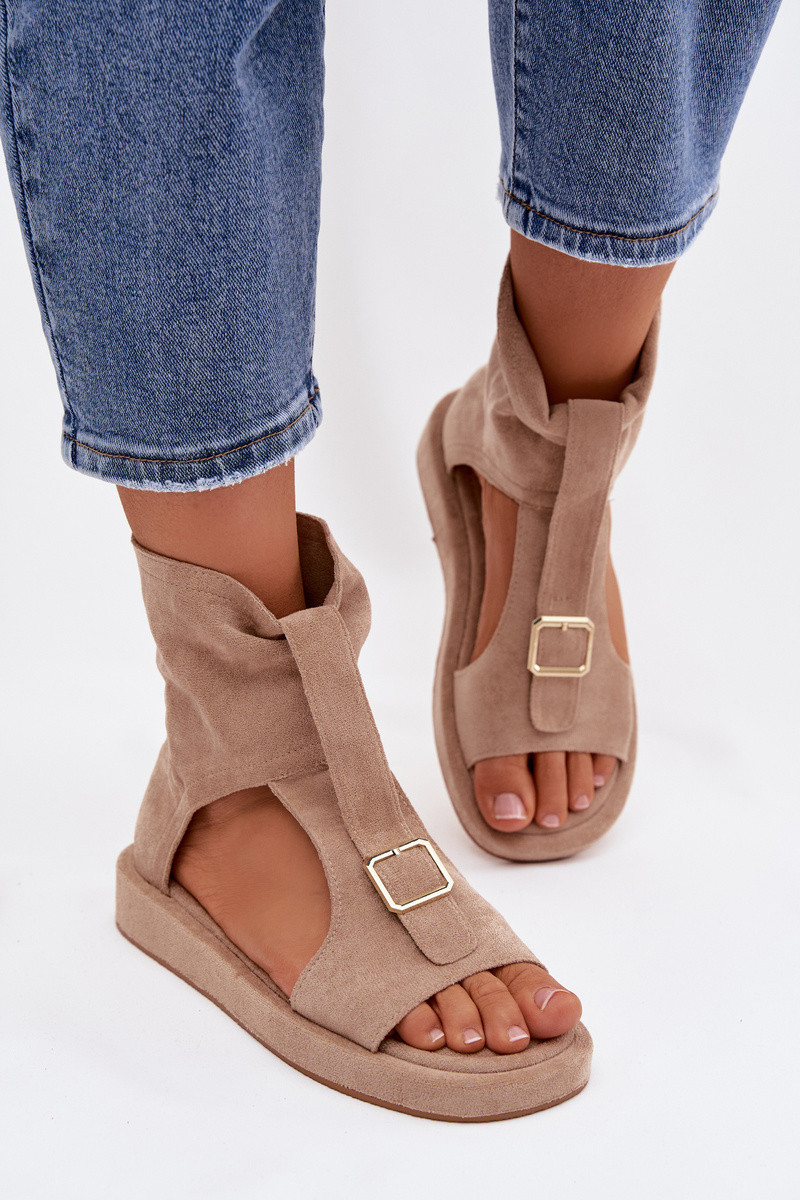 Sandali donna color sabbia con gambale Coralya