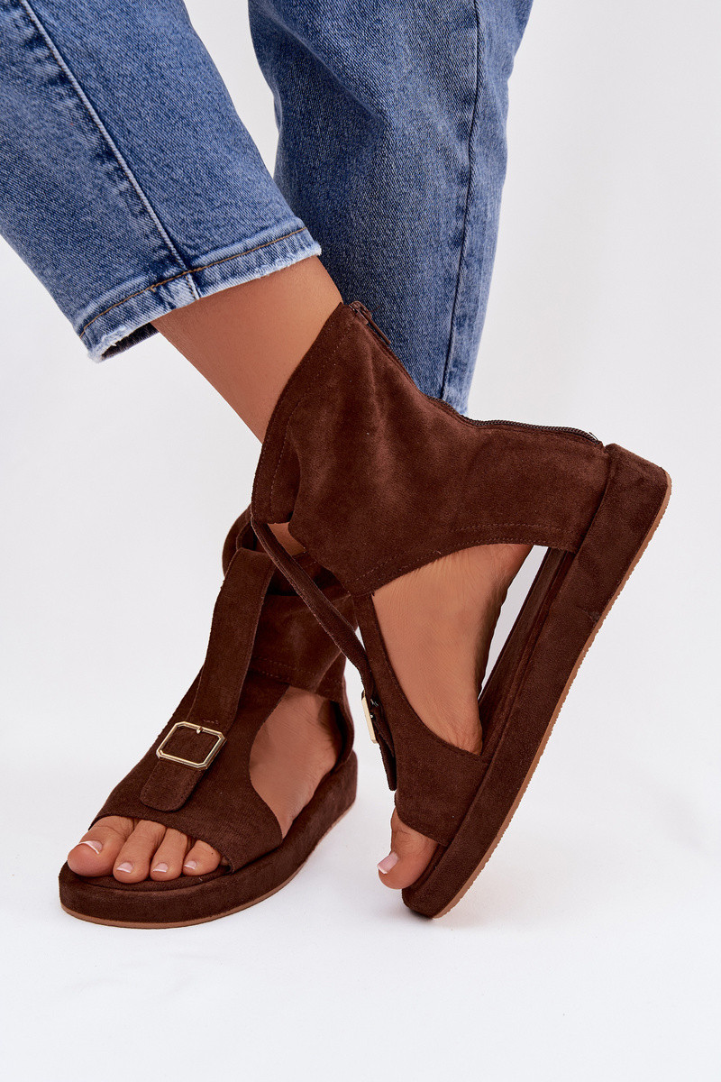 Sandali donna color cioccolato con gambale Coralya