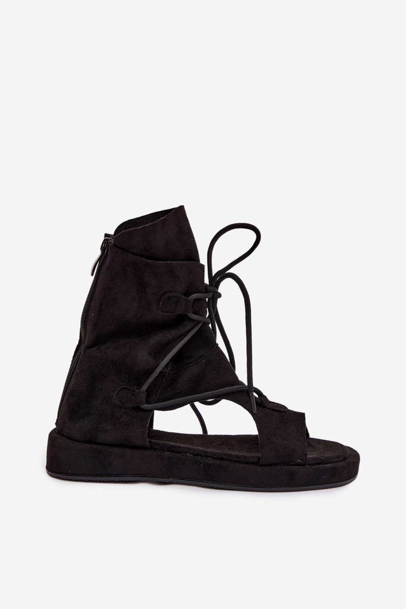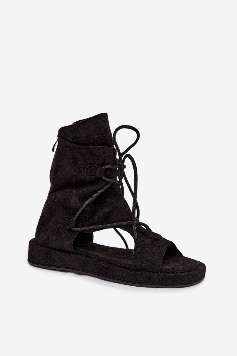 Sandali da donna in camoscio sintetico con gambaletto e lacci color nero Ferlisse