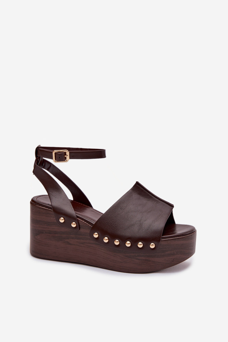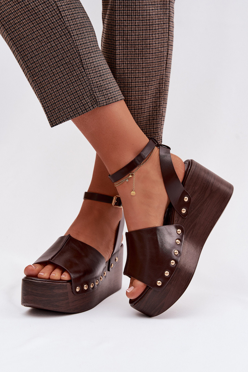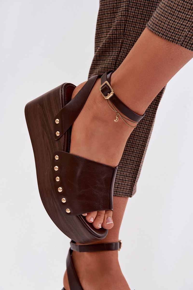 Sandali da donna Su un cuneo Ze colore doratomi Borchie CzekoladoAe Galorina