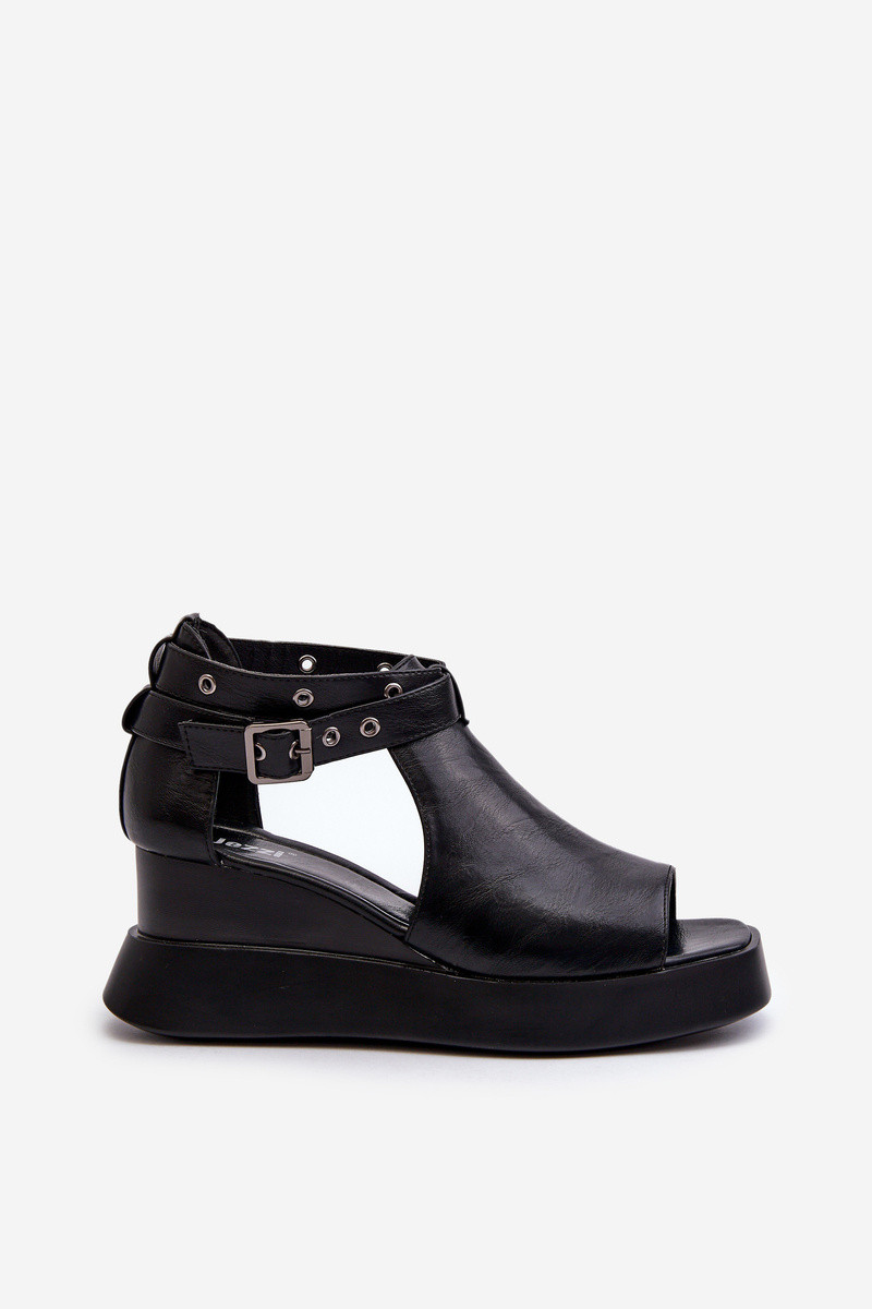 Sandali da donna con una piattaforma I Koturnie in ecopelle colore nero Hloeli