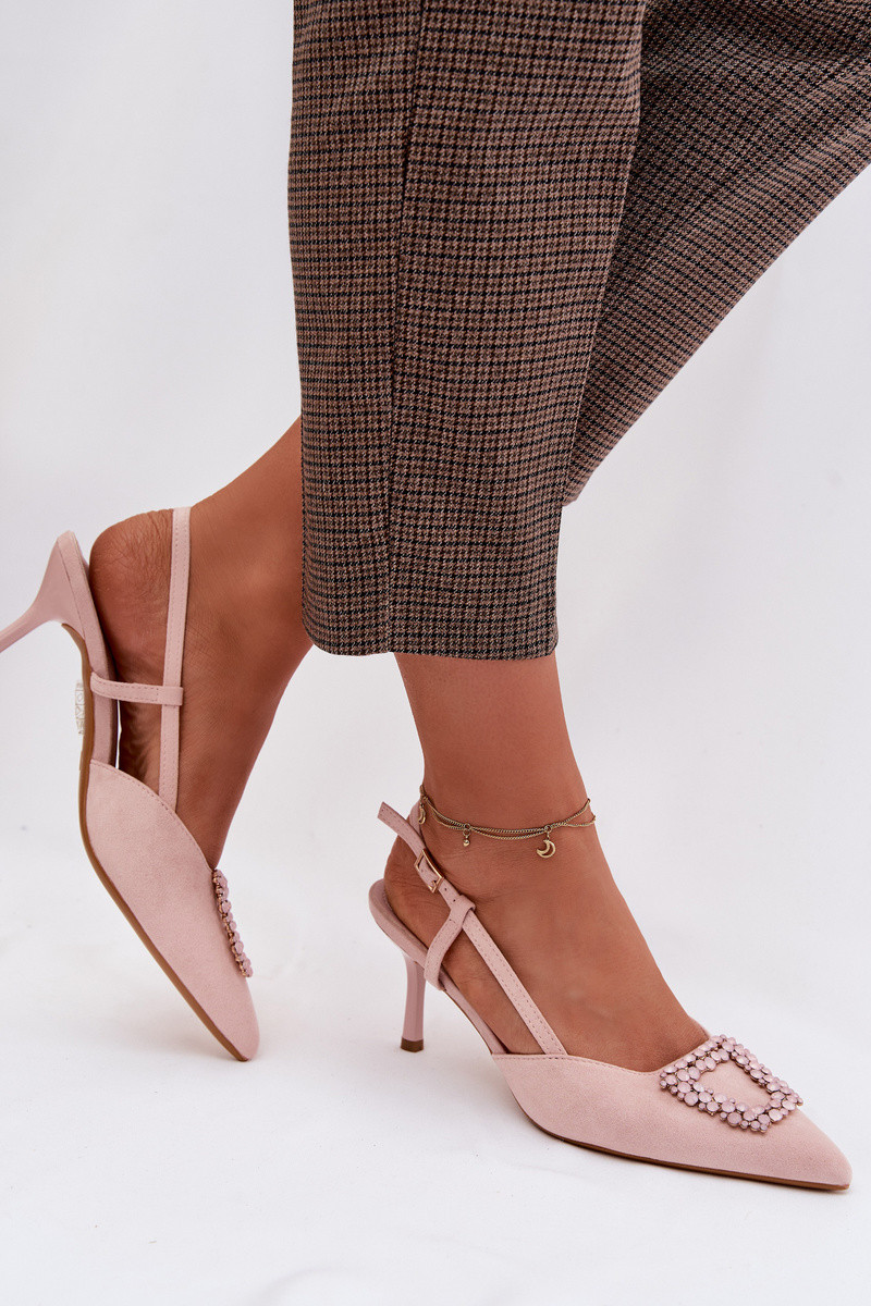 Sandali da donna con tacchi sottili e decorazioni, rosa, Ismeria