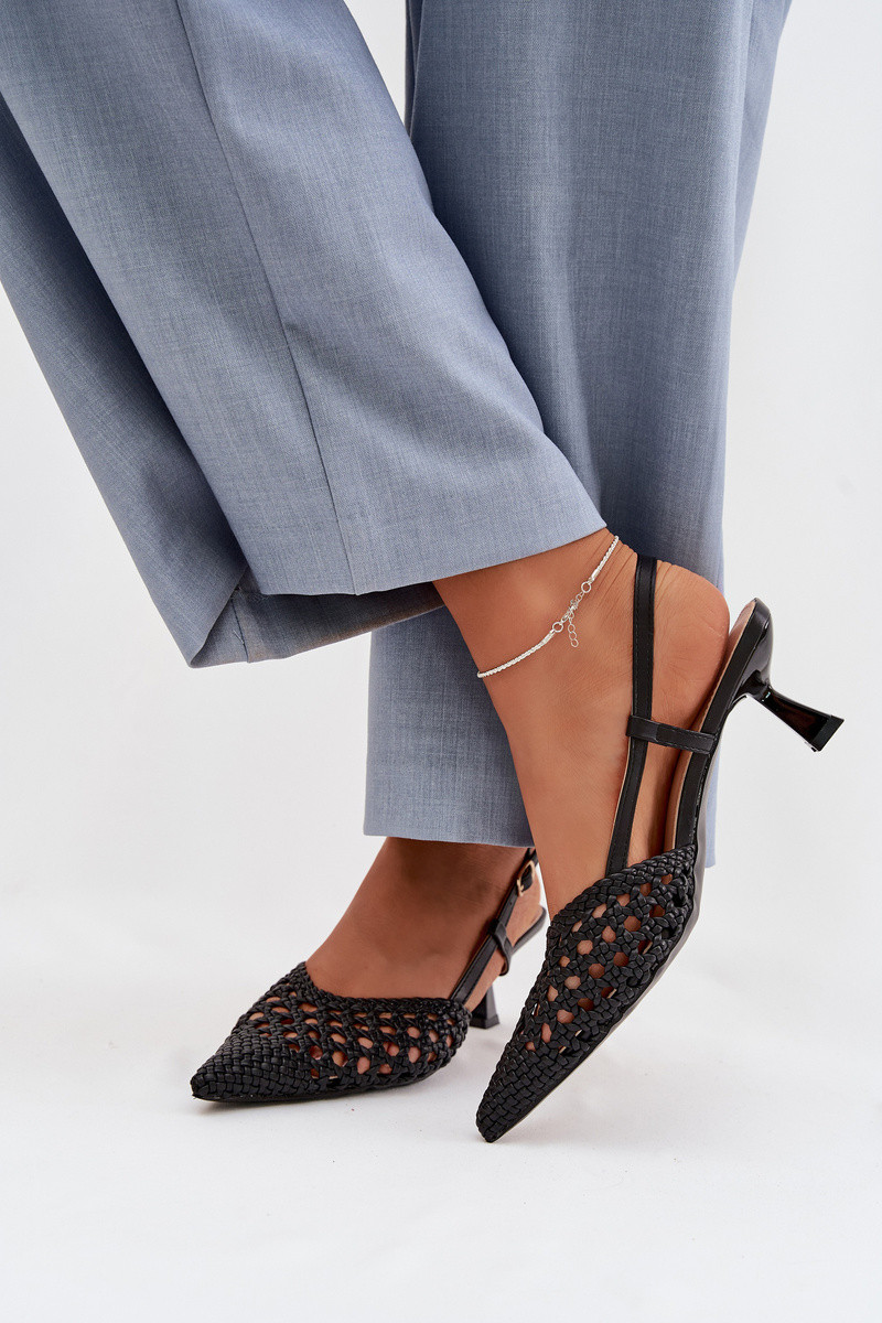 Selinae sandali da donna neri con motivo e tacchi