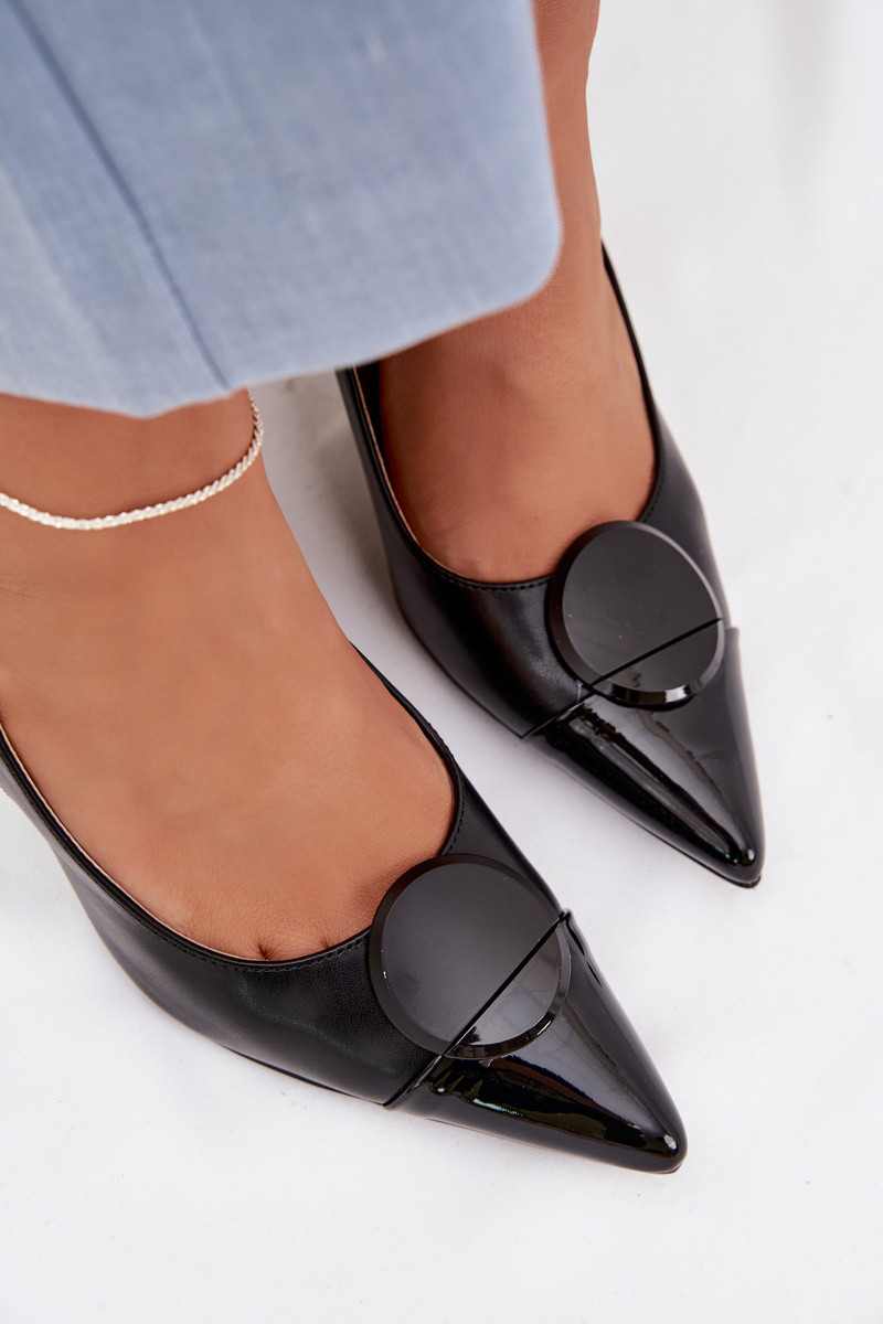 Sandali da donna con tacchi sottili Con decorazioni Detalem colore nero Deveriae