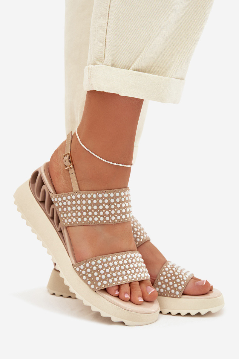Sandali in pelle scamosciata con decorazione D&A CR61-3067 color sabbia