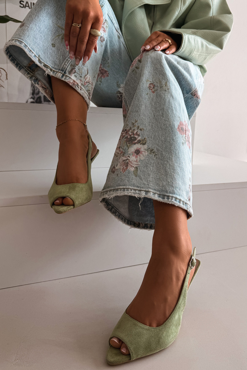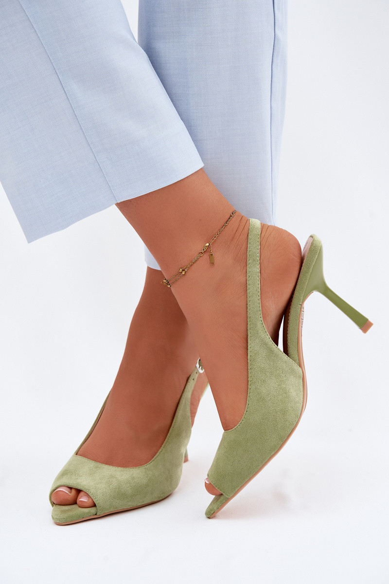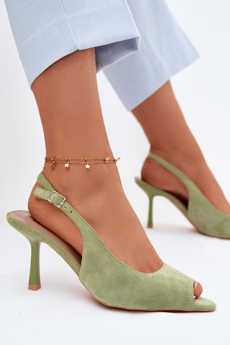 Sandali con tacco sottile in suede sintetico color sabbia Sevina