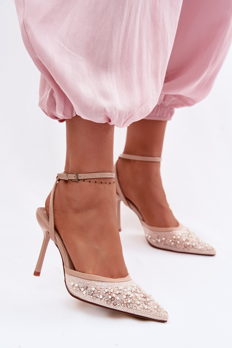 Sandali da donna con tacco sottile decorati con paillettes neri Nedira