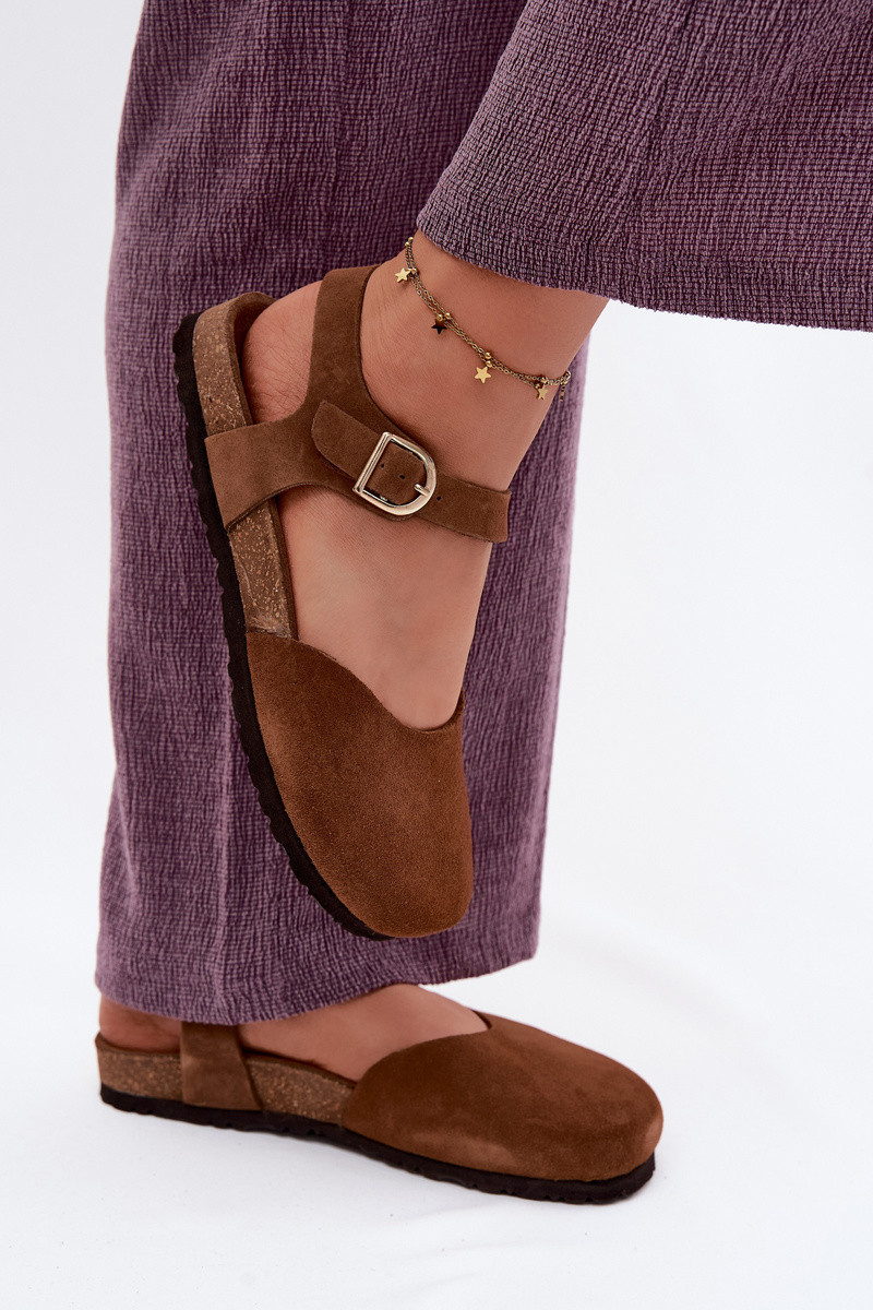 Pelle Sandali da donna in camoscioZakrytymi Palcami Deveciejka H7365-02 colore marrone