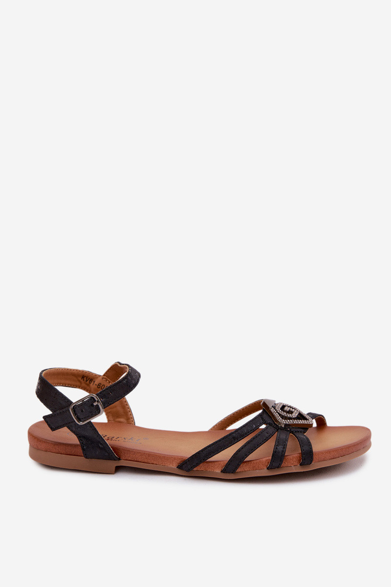 Sandali piatti per donne con cinturini e decorazione S.Barski KV61-6056 colore nero