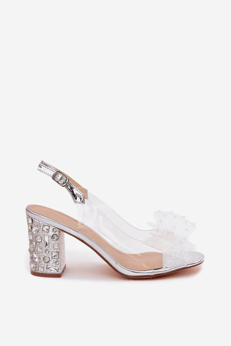 Sandali con tacco e gemme scintillanti, rete con fiocchi D&A MR61-9010 argento