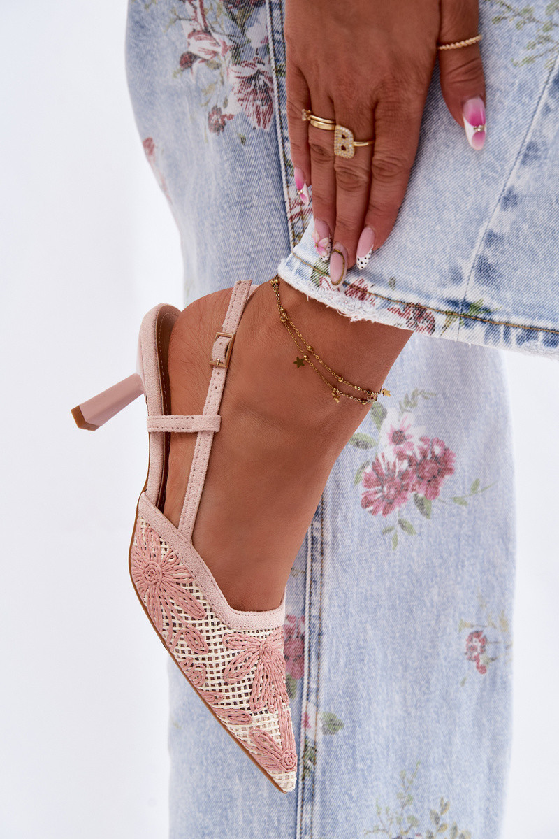 Sandali con tacco alto color sabbia con fiori Kelmira