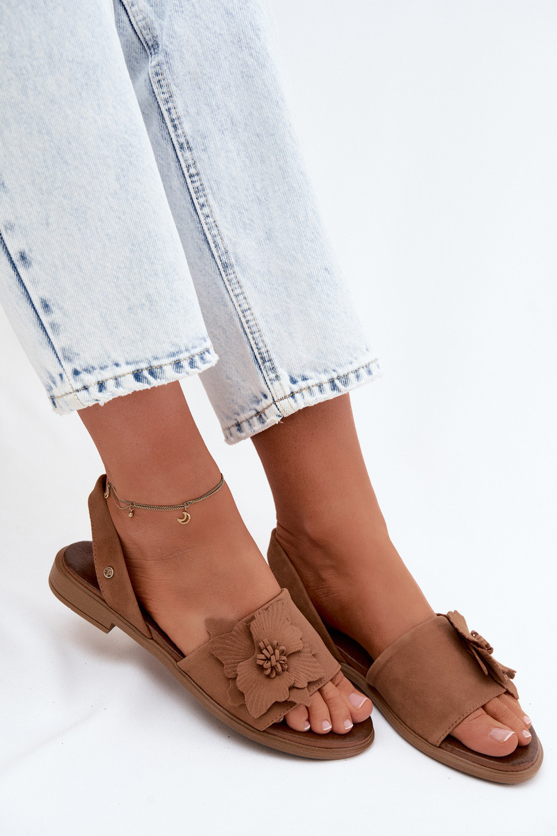 Sandali in suede con tacco largo e fiori decorativi Zazoo 407471 in arancione