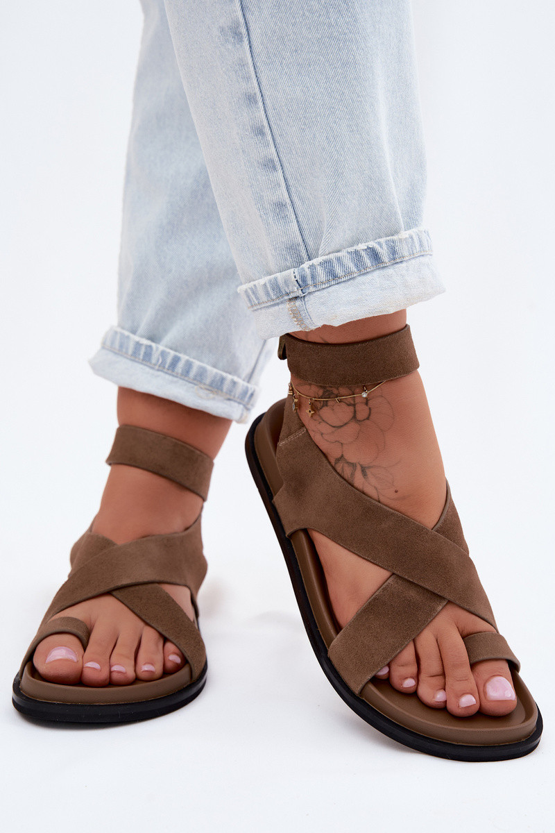Sandali piatti in suede sintetico color sabbia