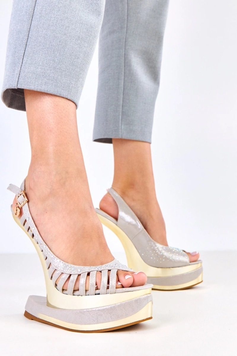 Sandali grigi con zirconi su tacco futuristico, Kenni