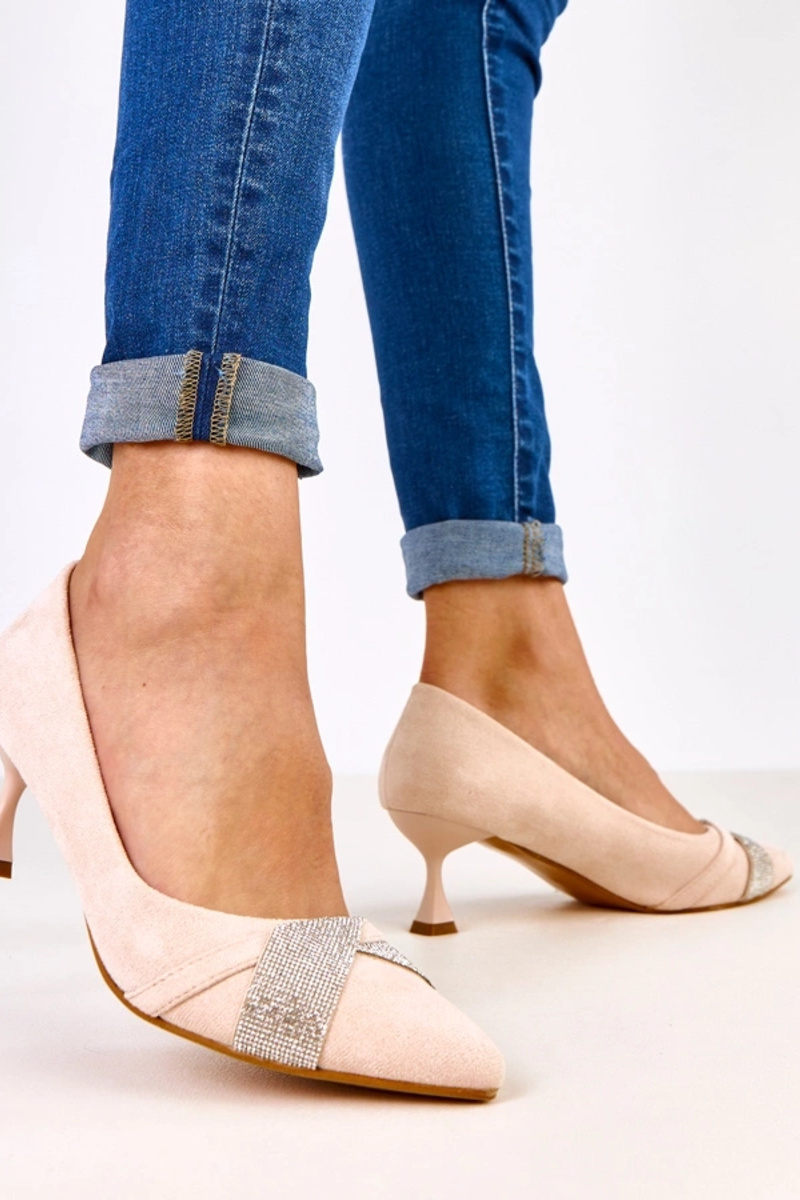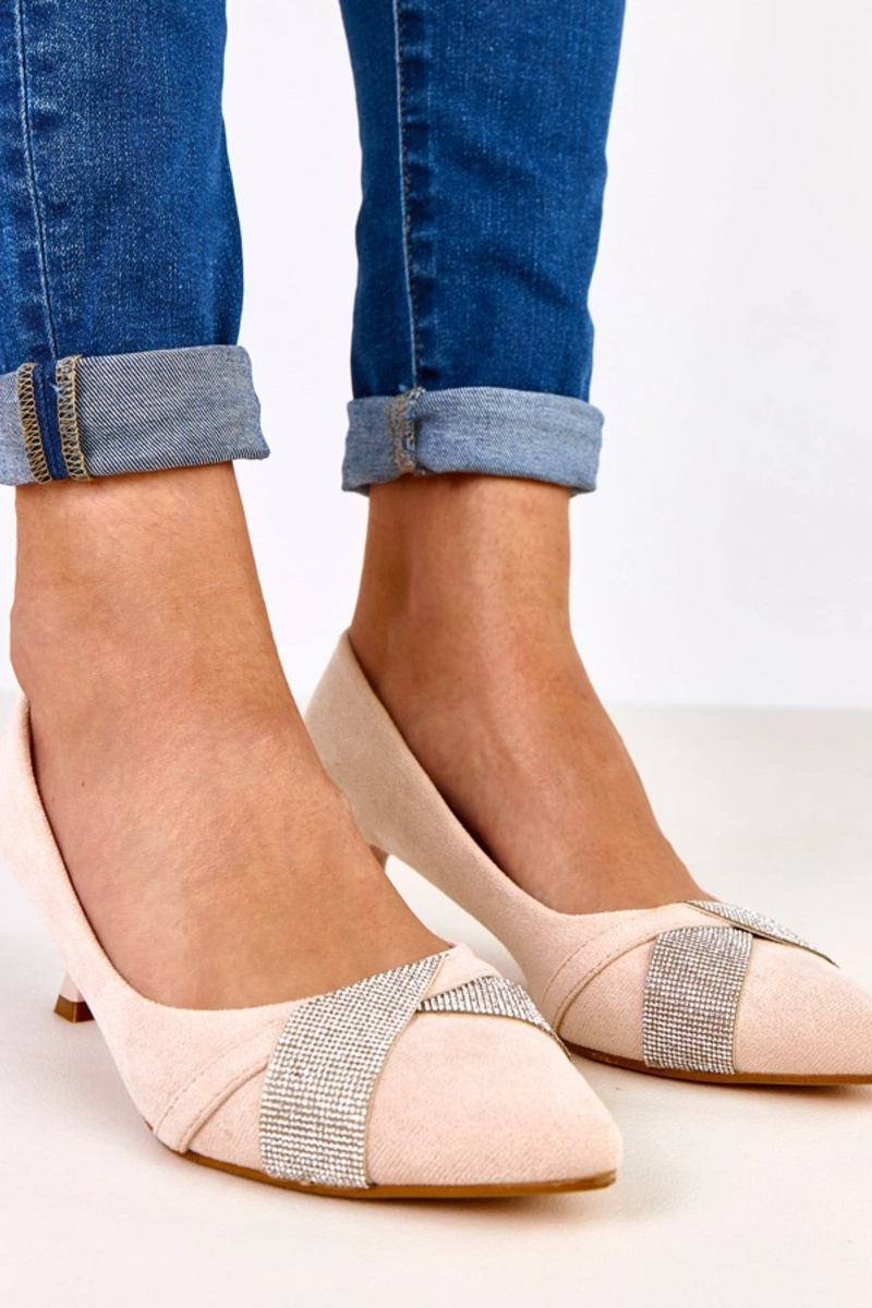 Scarpe eleganti sabbia con tacco basso e zirconi, Tajlana