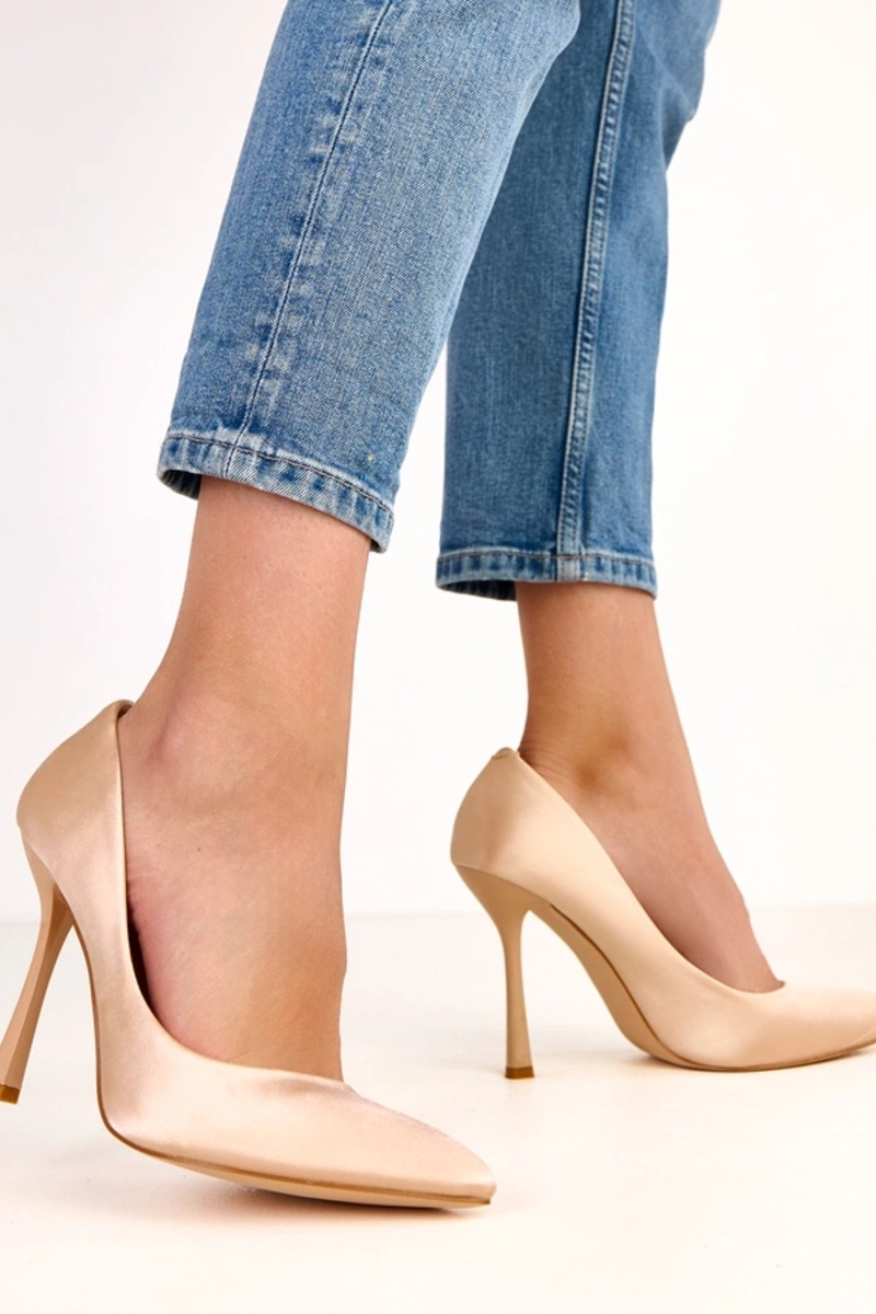 Décolleté color sabbia con rifiniture in raso Cindy
