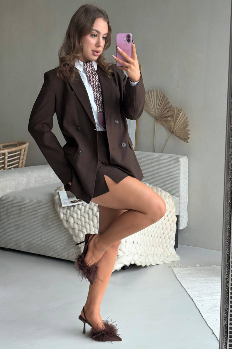 Décolleté con piume e tacco aperto color cioccolato Belice