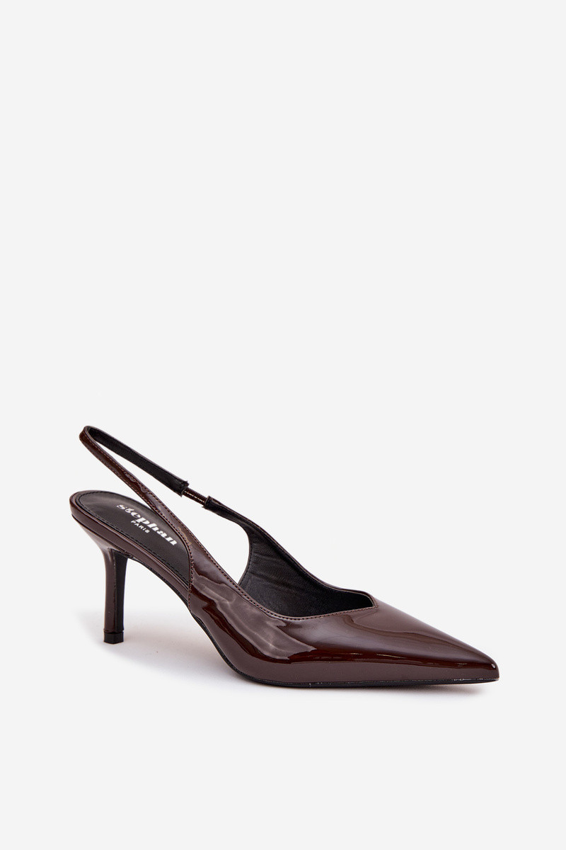 Scarpe Phelia color cioccolato con tacco sottile e effetto lacca