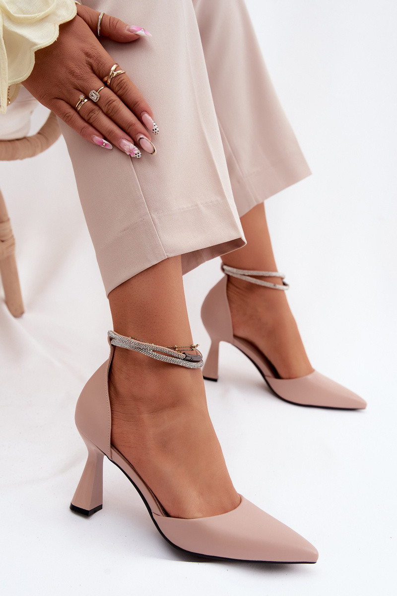 Scarpe beige con tacco basso e cinturini lucidi Vinceza 62283