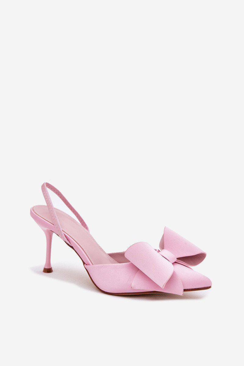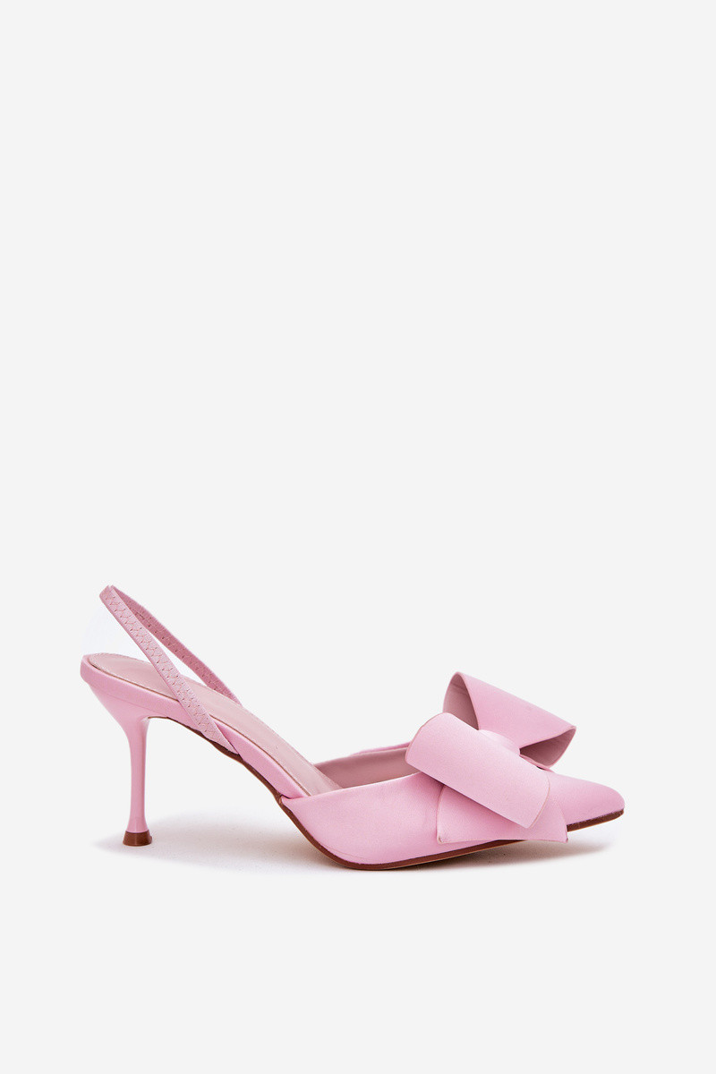 Scarpe con tacco alto rosa con tacco aperto e fiocco Eklevia