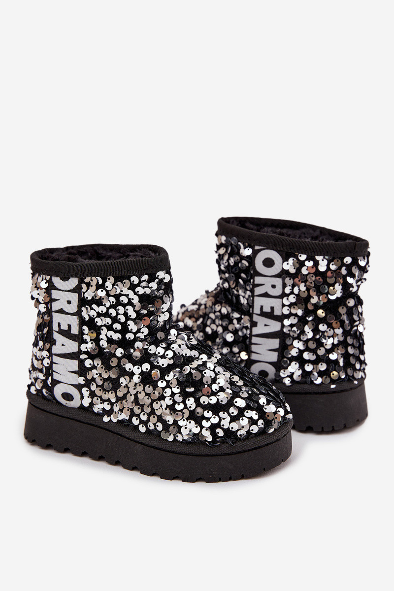 Stivaletti da neve per bambini foderati con scaglie brillanti nere e argento Rebbica