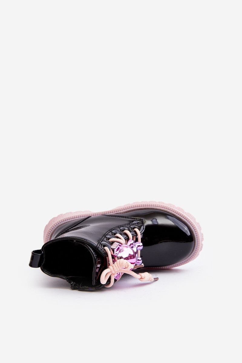 Stivaletti da bambino Bunnyjoy foderati con effetto vernice e ornamenti neri e rosa