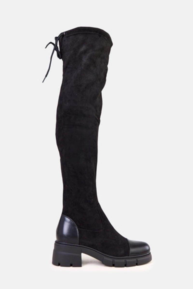 Czarne kozaki ekozamszowe za kolano Marianna