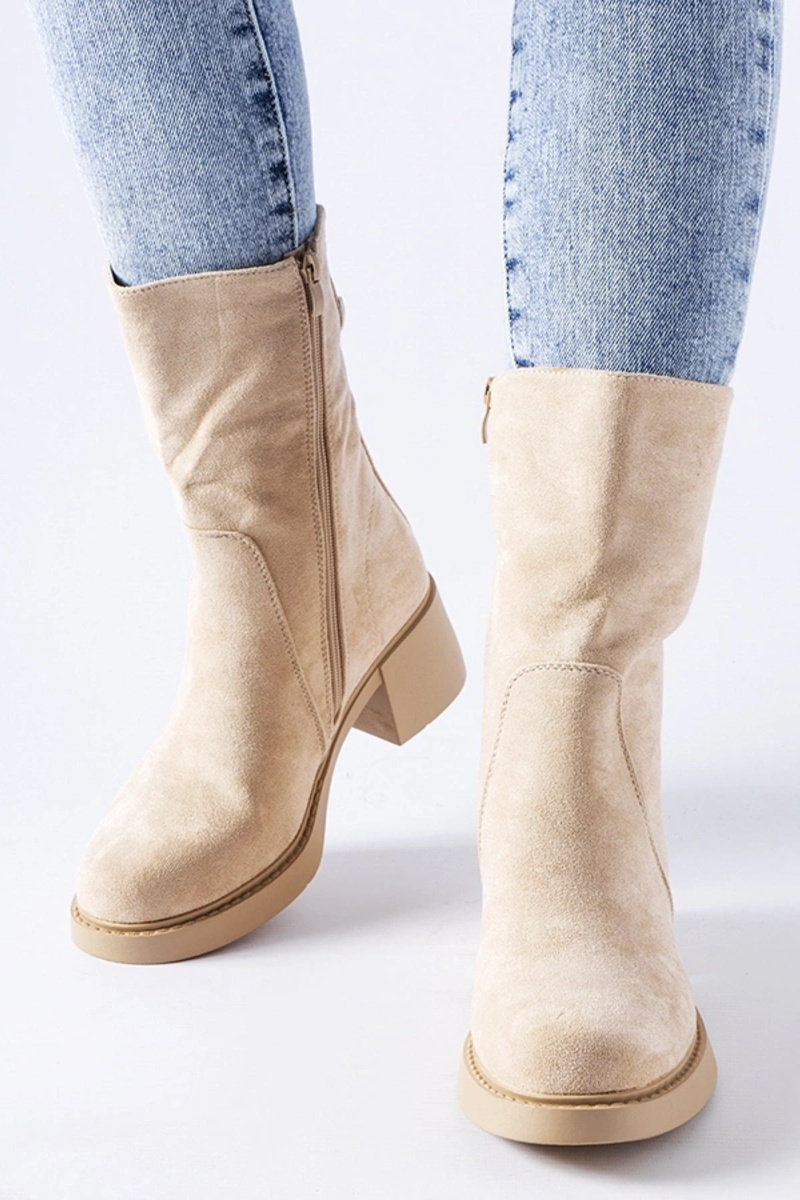 Stivaletti color sabbia con tacco in suede sintetico Agordino
