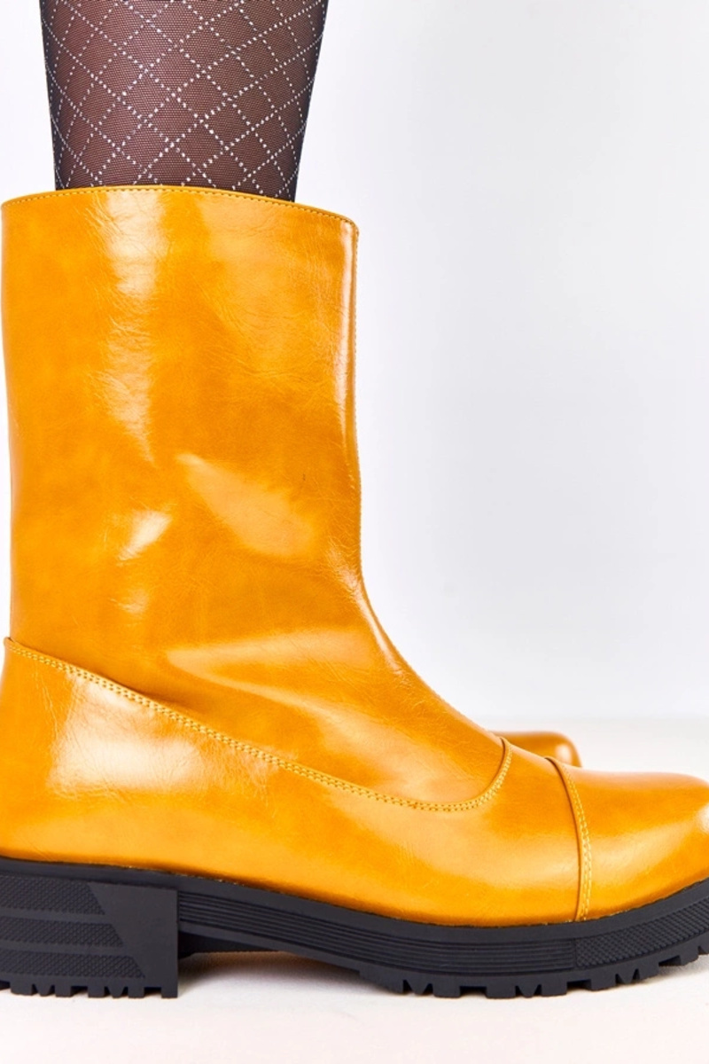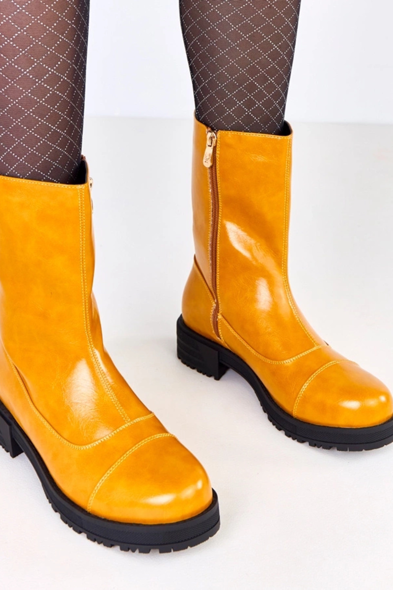 Pomarańczowe botki damskie na płaskie podeszwie Almoro