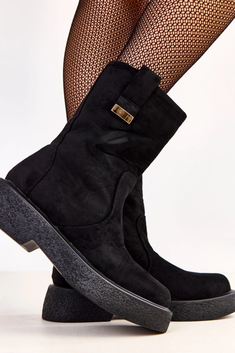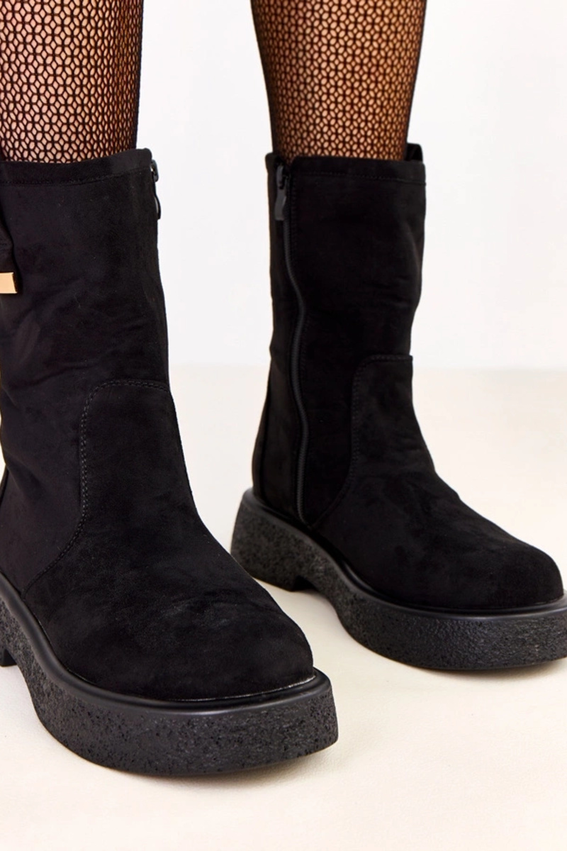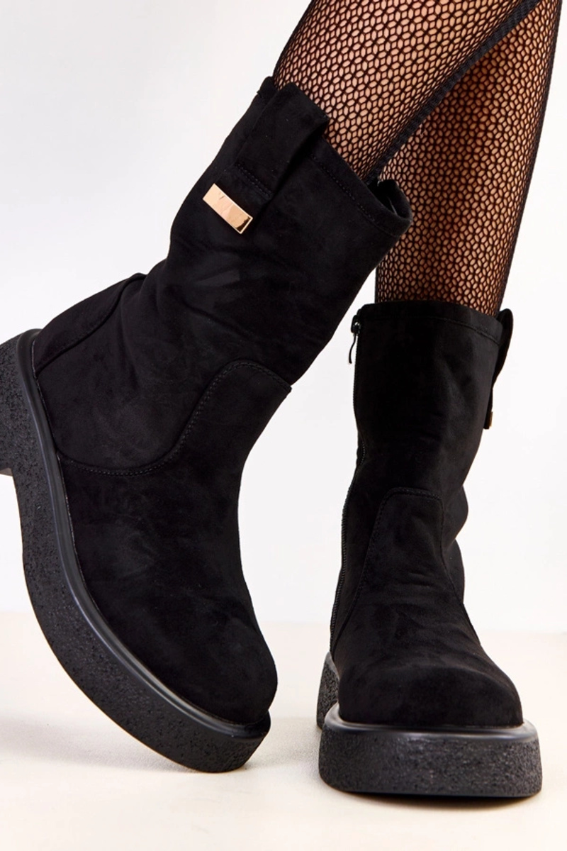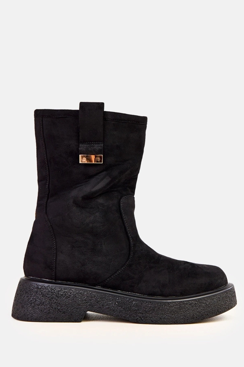 Stivaletti neri in ecopelle scamosciata con decorazione dorata Mileda