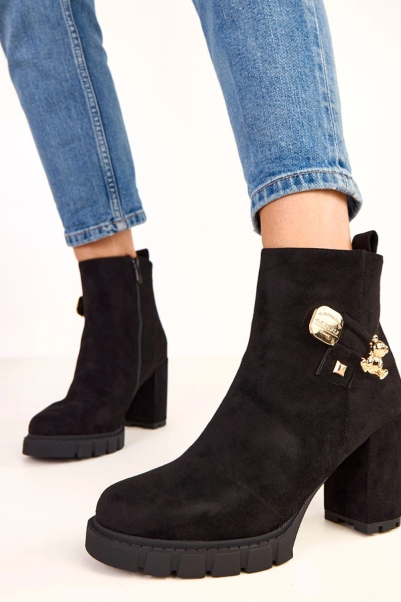 Stivaletti neri con decorazione di orsetto dorato Naste
