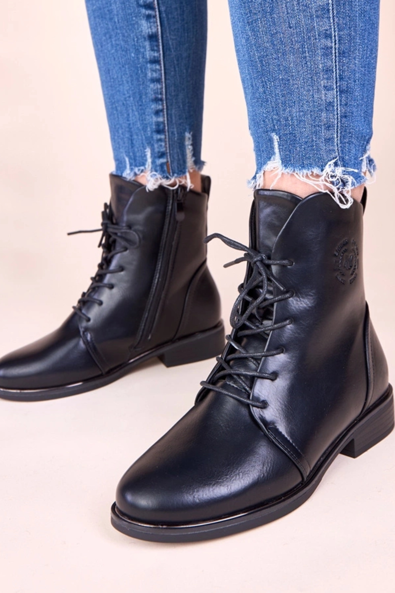 Stivaletti neri caldi con lacci Eladia