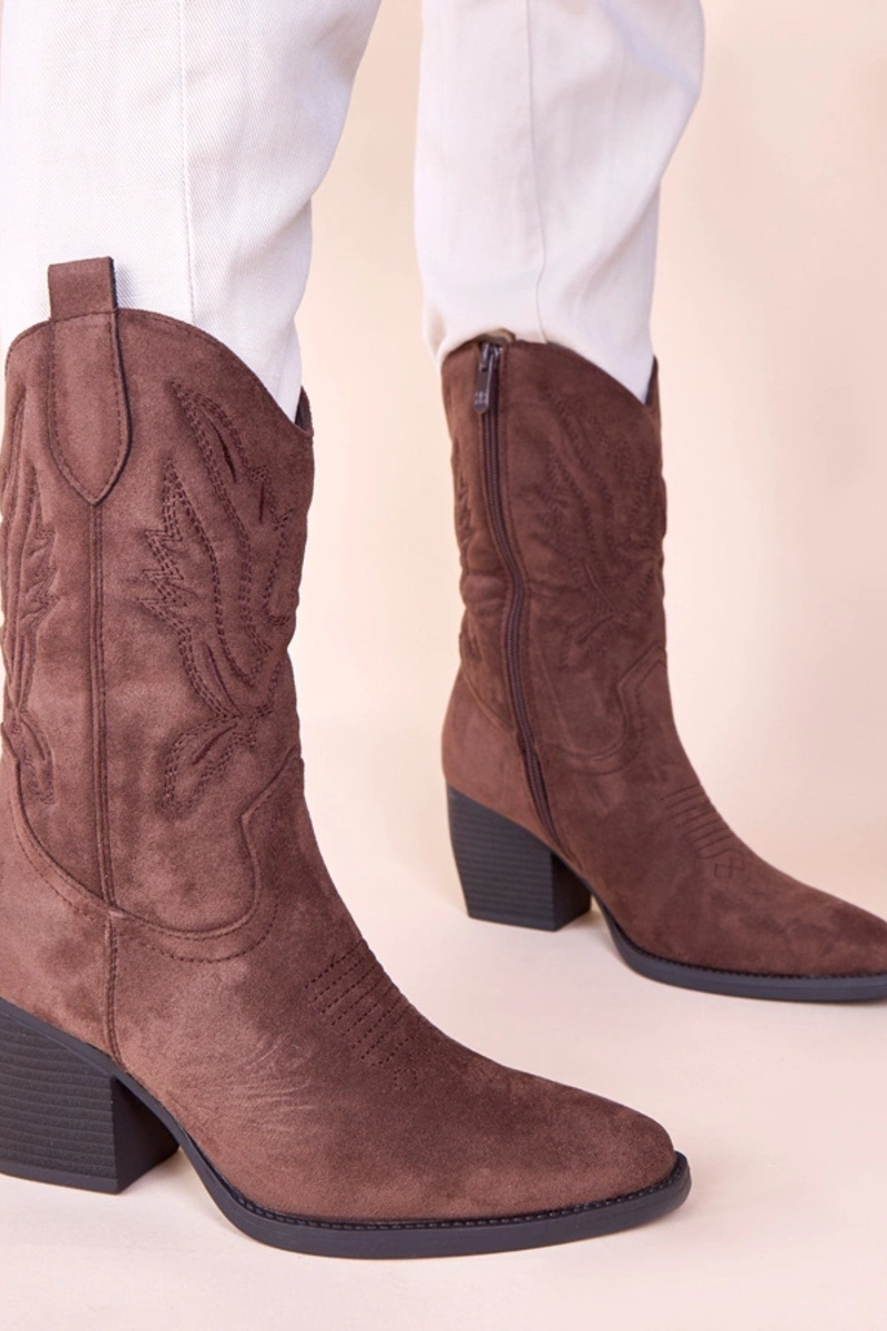 Stivaletti cowboy marroni con applicazione ricamata decorativa Cassa
