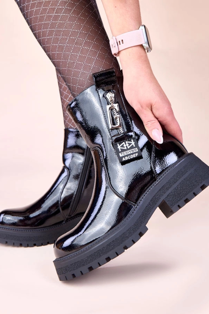 Stivaletti neri lucidi con zip decorativa Taraya