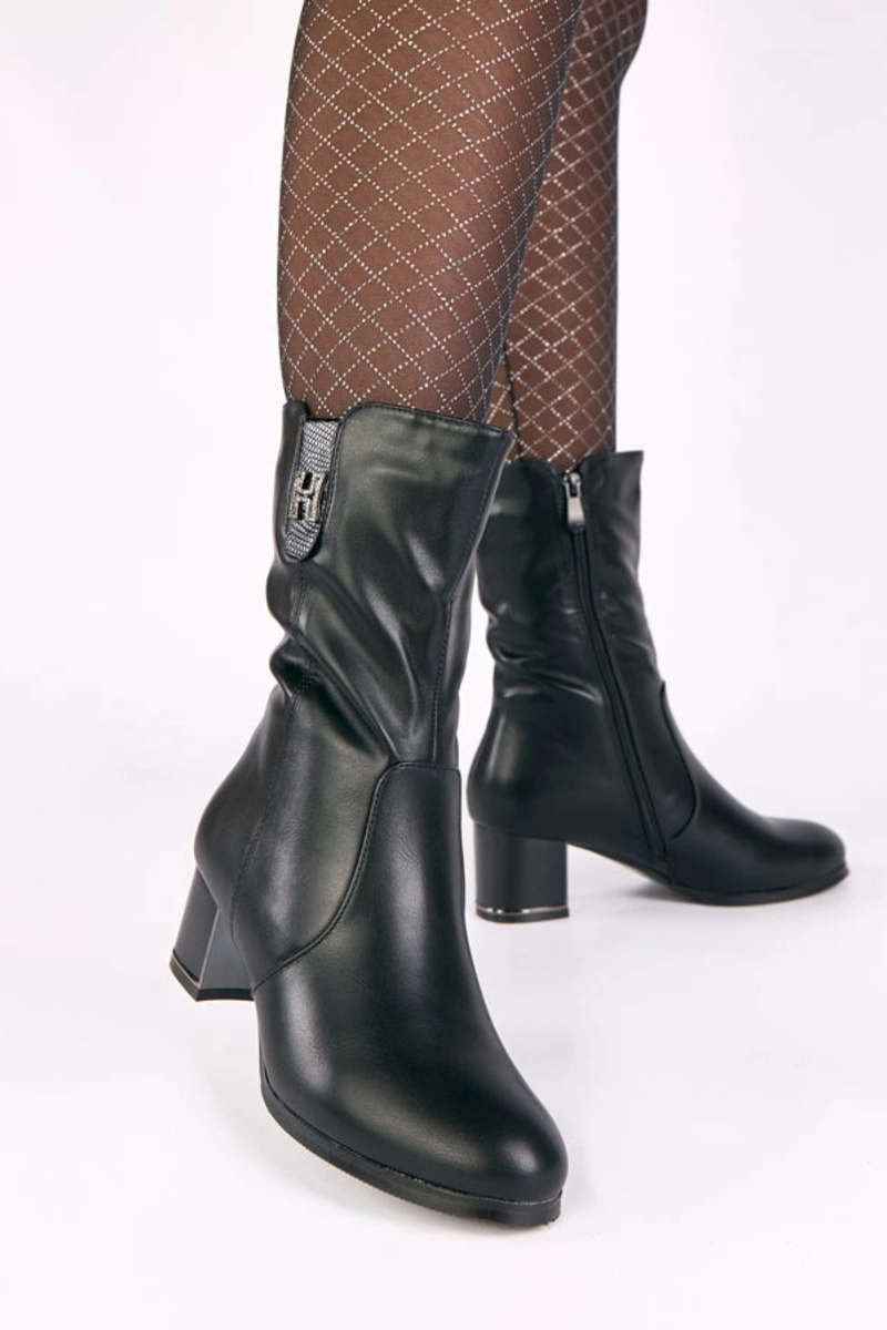 Stivaletti neri foderati con tacco e zirconi Gusta