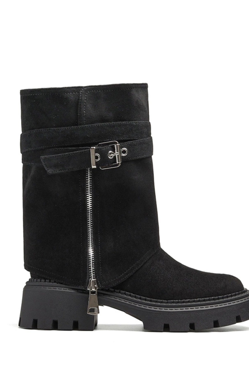 Stivaletti neri con gambale rimovibile e zip decorativa Edna