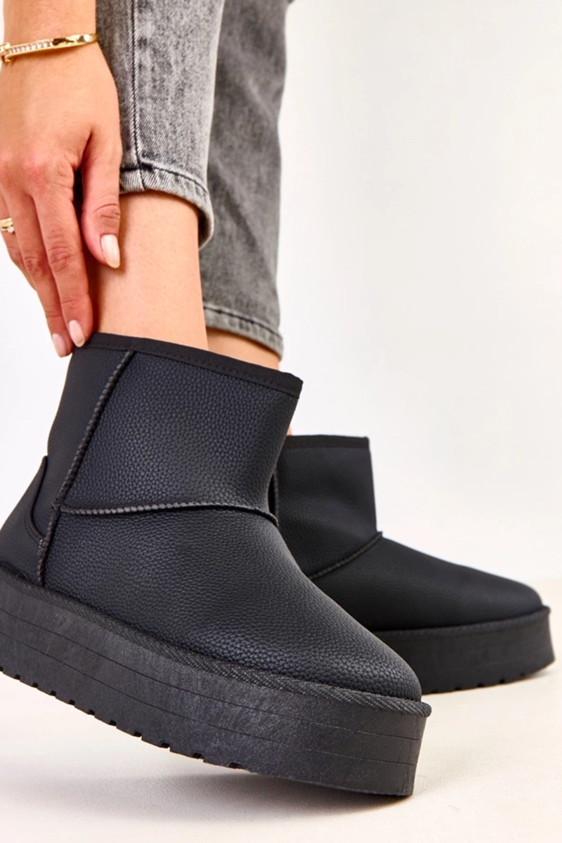 Stivali da neve bassi neri con piattaforma in pelle sintetica, Reinol