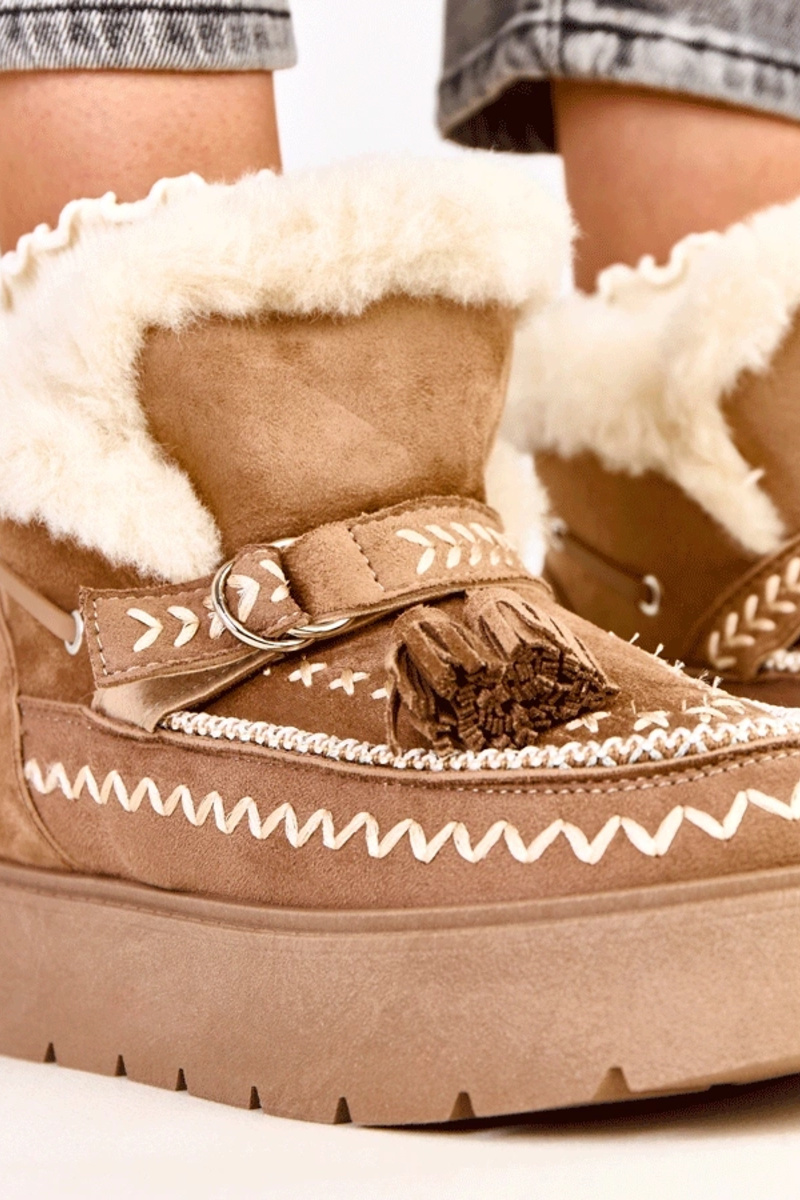 Stivali da neve marrone chiaro con piattaforma e frange, Maurisa