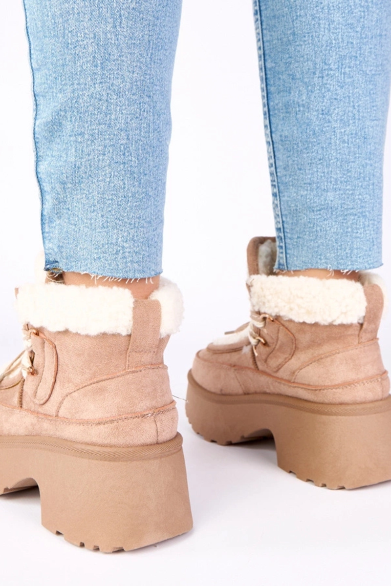 Stivali da neve color sabbia scuro con pelliccia sulla piattaforma "Ziza"