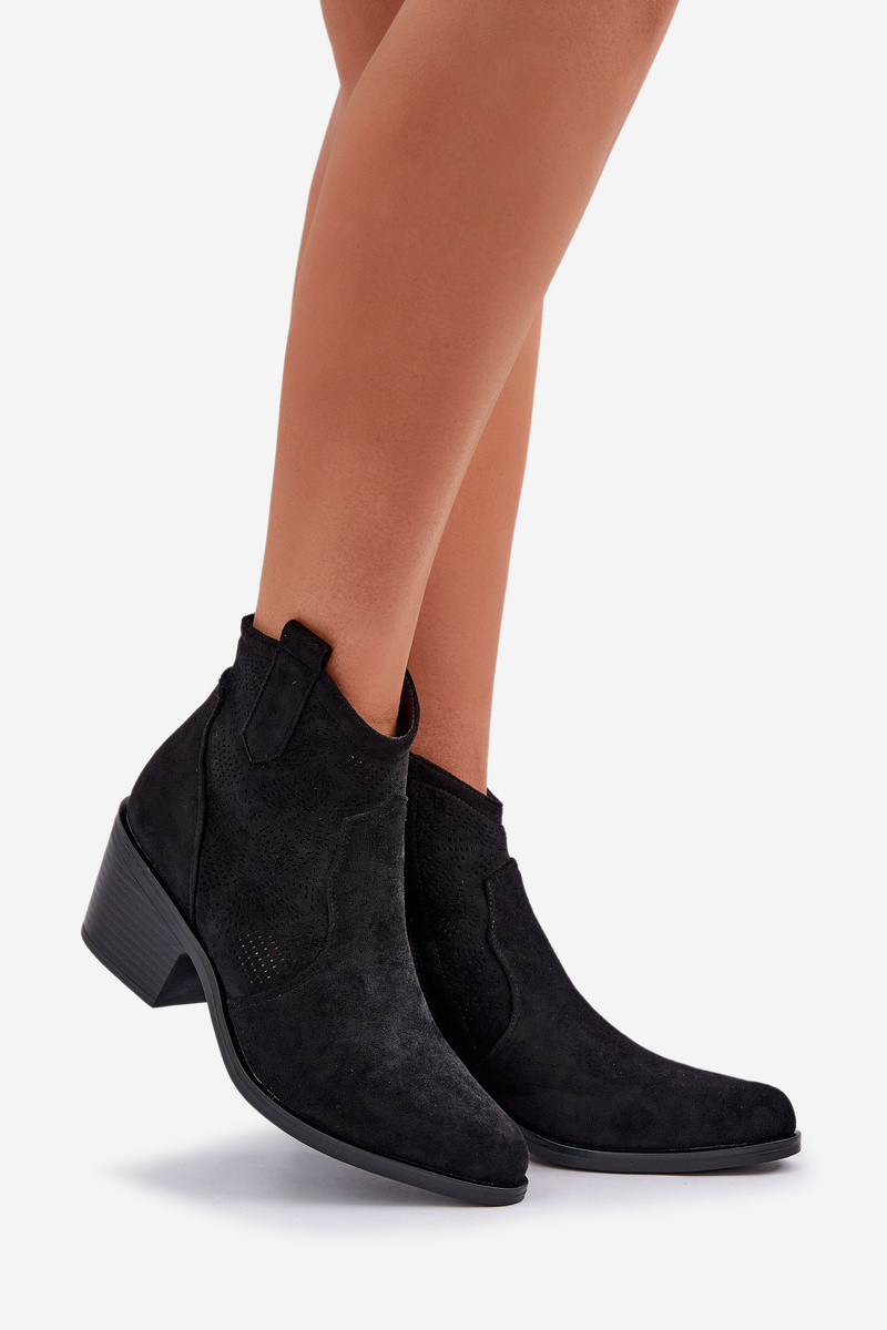 Stivaletti in stile cowboy in suede sintetico traforato S.Barski HY51-061 neri