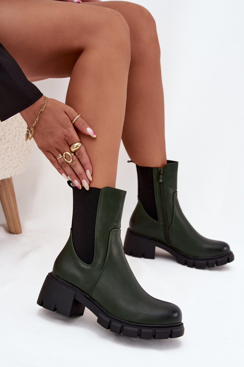 Stivaletti da donna in pelle sintetica color khaki Kyra
