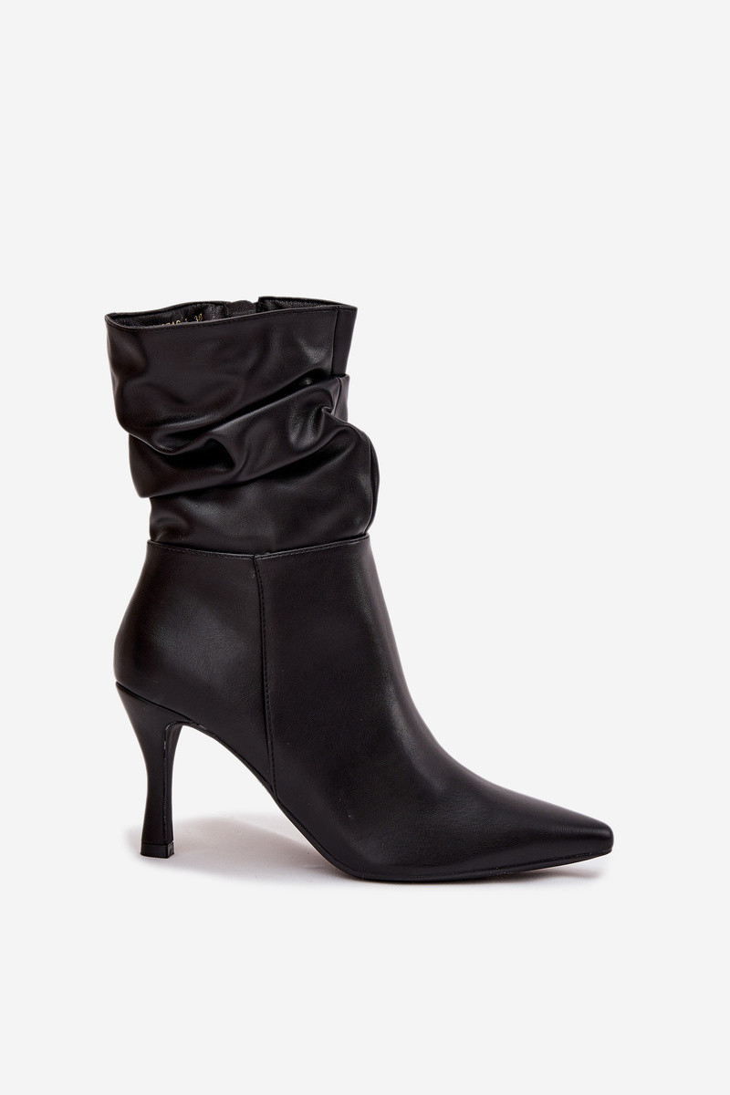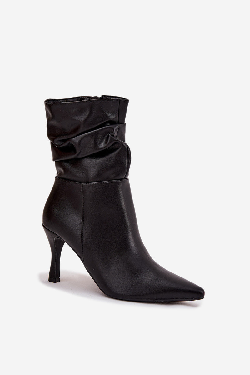 Stivaletti da donna con tacchi sottili, parte superiore arricciata e chiusura nera "Ulisse"