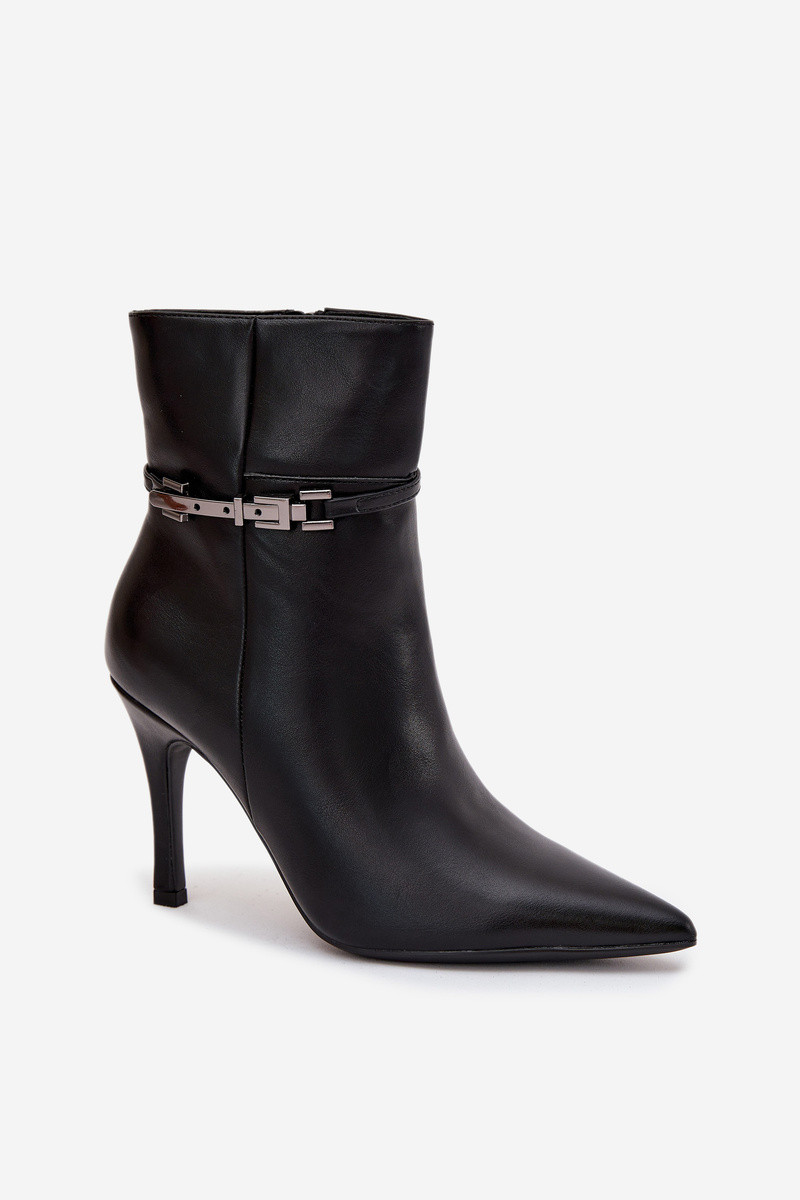 Stivaletti donna neri foderati con tacco sottile, cinturini e elementi argentati "Bellisse"
