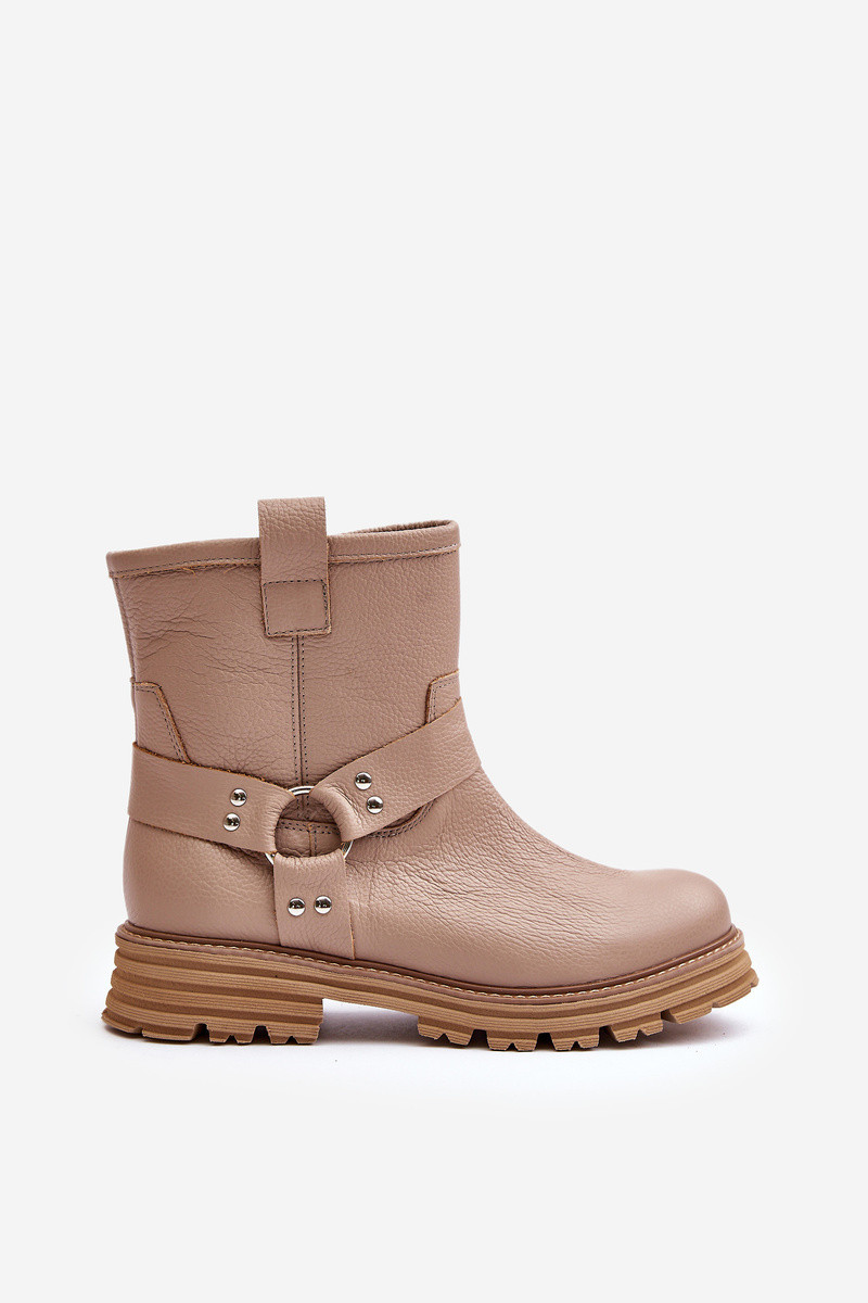 Stivaletti in pelle da donna con tacco largo LeĮskis 3610 sabbia