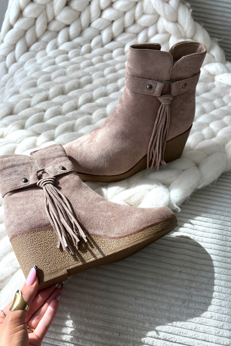riscaldamento Stivali da donna Su un cuneo con frange beige Olivarae