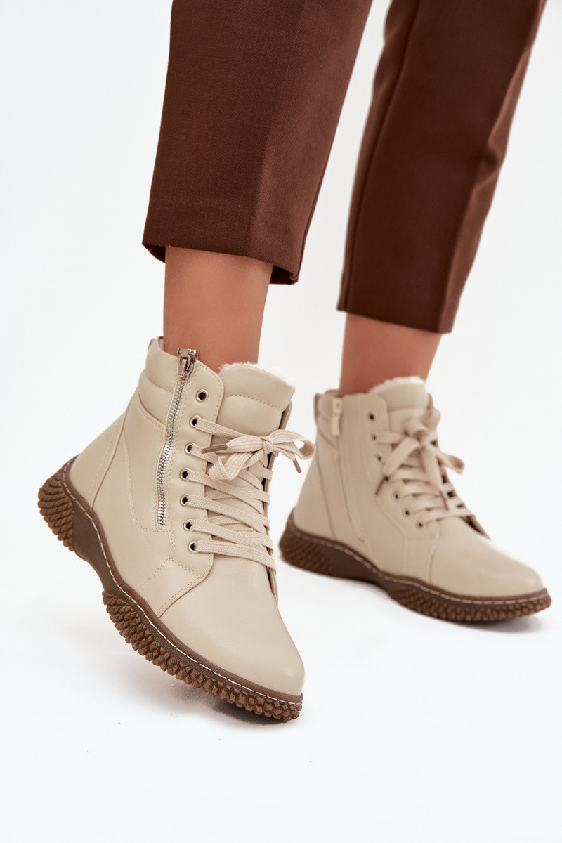 Stivaletti donna in pelle sintetica con pelliccia interna, imbottiti, color sabbia Ulverina