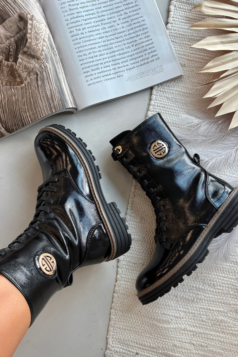con effetto vernice Stivaletti da lavoro Femminile Ze colore doratom Detalem riscaldamento colore nero Dorialine